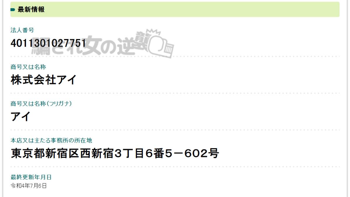 当たり前ですが、法人登記されています。今回、サイト内の住所とも一致していました。