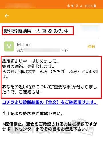 この大葉ふみという鑑定師は、誰彼構わず同じようなメールを送っているようですね。